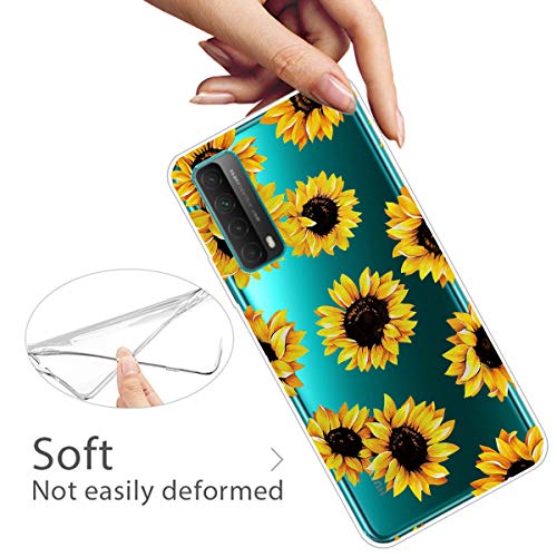 QC-EMART 3 Pezzi per Huawei P Smart 2021 Cover Custodia in Silicone Morbida Trasparente con Disegni Stilosa Sottile Protettivo Case Copertura per Huawei P Smart 2021 Girasole Farfalla