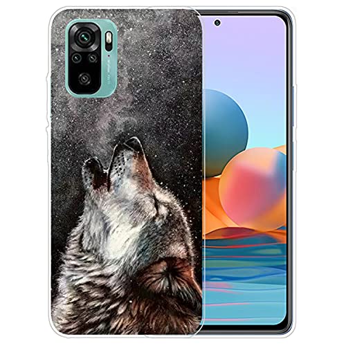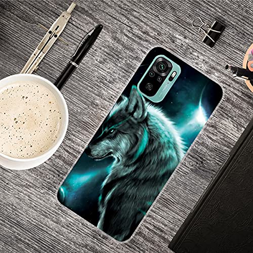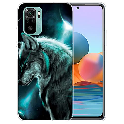 QC-EMART 3 Pezzi per Xiaomi Redmi Note 10 Cover Custodia in Silicone TPU Morbida Trasparente con Disegni Originale e Stilosa Sottile Protettivo Case Copertura per Redmi Note 10 4G Nero Blu Lupo