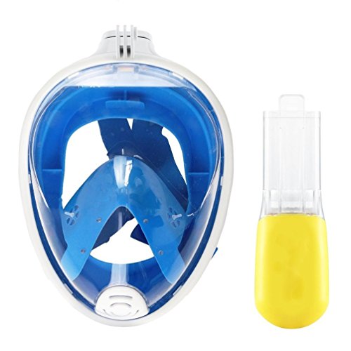 LA RESPIRAZIONE PROFONDA, FACILE - Assunzione di vista subacquea è più facile con un disegno completo volto unico che permette di respirare senza un tubo nella sua bocca. Sistema a secco snorkel frontale consente la valvola si chiude automaticamente per impedire all'acqua di entrare nel tubo di respirazione.
