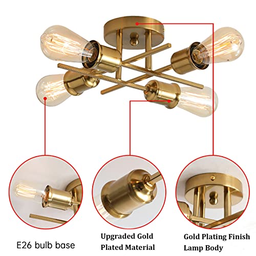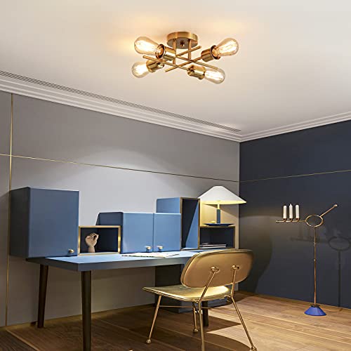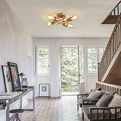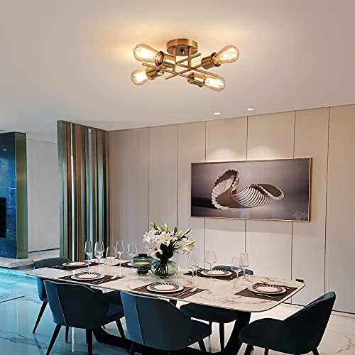 Qcyuui Lampadario Da Soffitto Vintage, Lampada da Soffitto Camera da Letto Moderno, 4 Luci E27 Lampada a Sospensione Industriale per Soggiorno Camera da Letto Loft Cucina (Dorato)