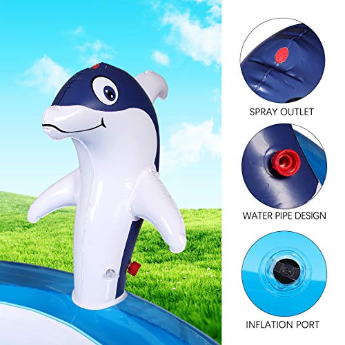 Qdreclod Centro di Gioco Acquatico con Scivolo, Piscina per Bambini da Giardino con l'irrigatore d'Acqua Dolphin Spray, Scivolo per Piscina