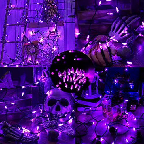 Luci per decorazioni di Halloween: 100 LED luminosi con lunghezza totale 11 m, lunghezza del piombo 1 m, distanza della lampada 0,1 m. filo verde scuro, speciale design delle lampadine a LED, crea luci affascinanti per te.