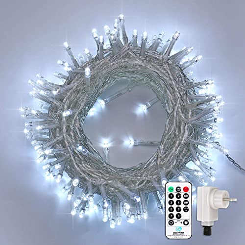 Qedertek Luci Albero di Natale 23 Metri 200 LED, Catena Luminosa, Cavo trasparente, Luci Natale Stringa Addobbi Natalizi per Albero di Natale, Luce Natalizie per Decorazione Interno (Bianco)