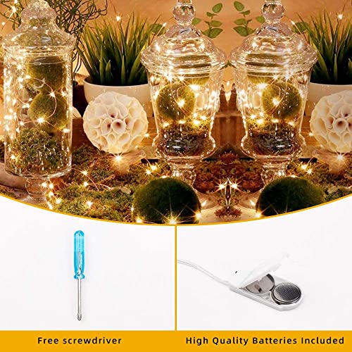 Qedertek Luci Led a Batteria 2M 20 LED, Filo Luci di D'argento Impermeabile, Luci Natalizie Bianco Caldo, Luci Led Stringa per Decorazioni Natalizie Interno ed Esterno (6 Pezzi)