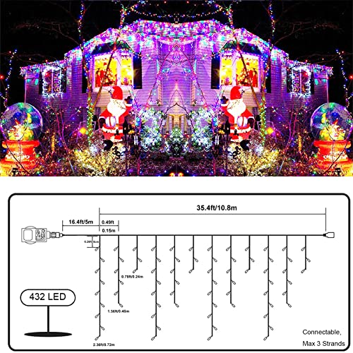 Qedertek 432 LED Cascata Luci da Esterno, 10M Tenda Luminosa Colorate, Luci Natalizie da Esterno con Telecomando, Tenda led con 8 modalità, Luci Decorazione Natale per Feste, Finestra, Blacone