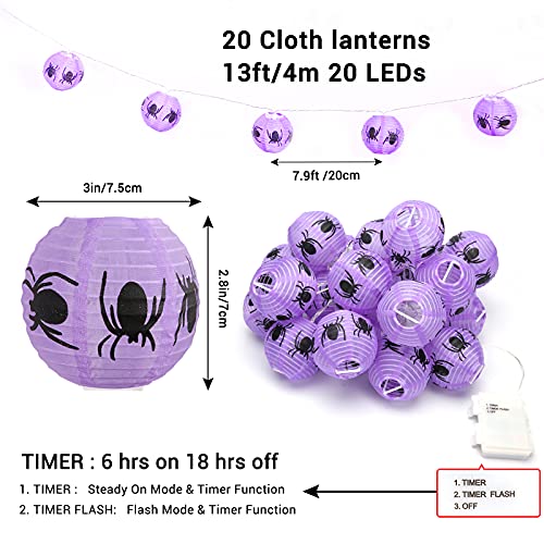 Qedertek Halloween Decorazione con Luce Viola, 20 Lanterna con Figura di Ragno, Catena Luminosa a Batteria per Halloween, Luci Halloween per Decorazione Interno ed Esterno, Giardino, Albero, Festa
