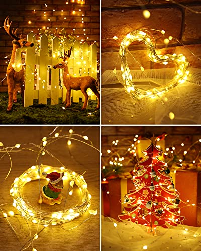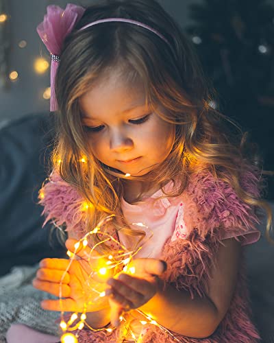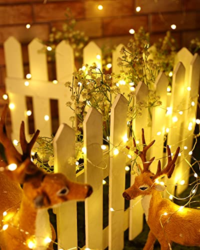 Qedertek 2 Pezzi Luci Led a Batteria 10M 100 LED, Luci Natale Esterno Impermeabile, Lucine Led Decorative, Luci Natalizie con Telecomando, Funzione di Timer, Dimmerabile (Bianco Caldo)