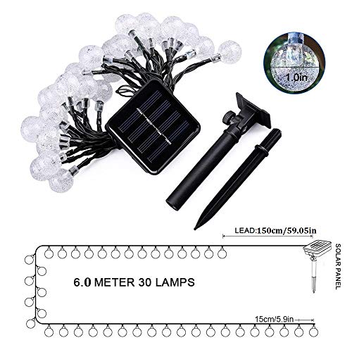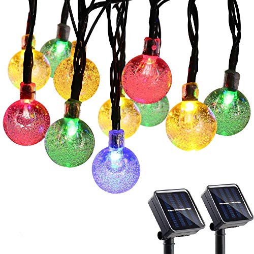 Qedertek 2 Pezzi Luci Natalizie da Esterno, Catena Luminosa 6M 30 LED con Pallina Trasparente, Luci Solare Stringa Impermeabile, Luci Colorate Addobbi Natalizi per Albero di Natale, Giardino