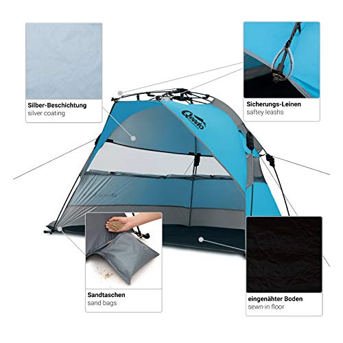 Qeedo Quick bay Tenda da Spiaggia Montaggio rapido (Quick-Up-System) con UV-Protezione - Blu