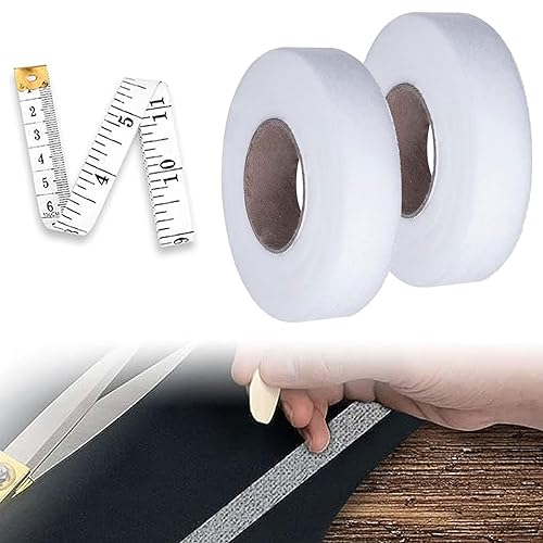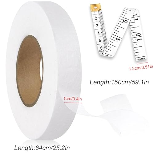 NASTRO TERMOADESIVO: Riceverete 2 rotolo di nastro per orlo da stiro bianco e un metro a nastro, ogni rotolo è largo circa 10 mm/0,39 pollici e lungo 65,6 iarde/60 metri;
