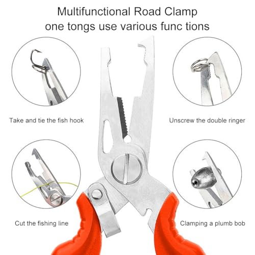 PINZA PESCA: riceverete una pinza da pesca con laccetto anti-scivolo e un sacchetto di nylon per riporla. La pinza da pesca è realizzata in acciaio inossidabile, resistente alla corrosione. Questa semplice pinza da pesca non può sopportare carichi pesanti, si prega di tenerla asciutta e pulita dopo l'uso, quindi riporla nella borsa di stoccaggio.