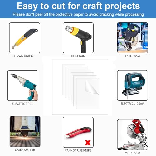【Facile da Tagliare】: Questa lastra acrilica trasparente può essere tagliata su misura con un taglierino o un tagliavetro, molto adatta per il fai-da-te. È possibile utilizzare queste lastre acriliche trasparenti per il taglio laser, l'incisione CNC, la stampa UV, la fresatura e la perforazione, la piegatura a caldo, l'allungamento e altro ancora. (La potenza della macchina da taglio laser deve essere superiore a 80 W.)