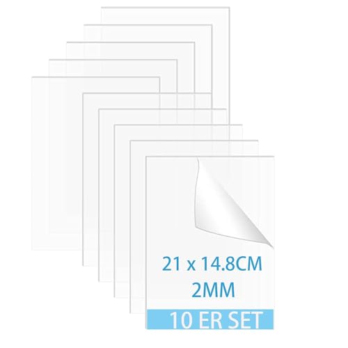 QEEYON 10 Pcs Fogli Acrilici Trasparenti A5, 1mm Trasparente Fogli di Acrilici 210 X 148mm, Pannello Acrilico per Cornice Lastra in acrilico per Disegno, Stampa, Fai da Te, Cornice per Foto
