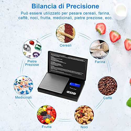 QEIHITYO Bilancia di Precisione da Cucina 500g/0.01g Grammi Precisione Professionale con Display LCD e 7 Unità Funzione Tara per Caffè Gioielli Farmaci (2 batterie incluse)