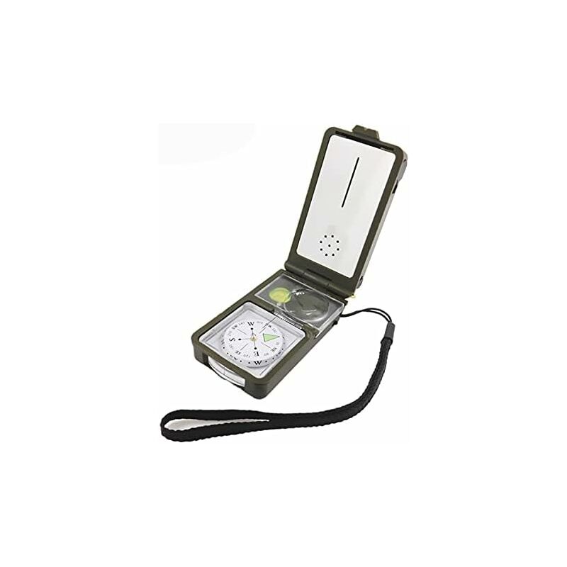 Questo strumento compatto ha 10 funzioni vitali in un unico strumento. Include livella, accendifuoco, fischietti, bussola, righello, riflettore, torcia a LED, lente d'ingrandimento, termometro, igrometro Realizzato in metallo tecnico ad alta resistenza e rivestito con vernice verde militare, in grado di operare in condizioni climatiche estreme. Costruzione leggera e resistente. Impermeabile e antiurto, adatto per la guida, la nautica, il campeggio, l'alpinismo, l'esplorazione, la caccia e altre attività all'aperto. all'aperto Dimensioni: 7 x 3,7 x 2,5 cm, peso netto: 72 g. Puoi portarlo in tasca ovunque. Buon aiuto per le attività all'aperto! Facile da trasportare, squisito e piccolo, ma comunque potente! Solo la metà con un palmo, è comodo da tenere e uso;