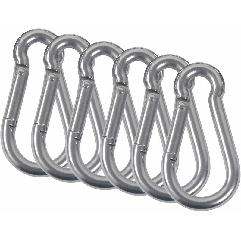 Taglia:M5 Materiali: il nostro moschettone è realizzato in acciaio inossidabile 304. Quindi è elegante, resistente, leggero e pratico, non preoccuparti che il moschettone sia molto pesante, è un ottimo strumento per escursionisti, campeggiatori, fotografi o chiunque porti una borsa. Il moschettone può essere fissato direttamente allo zaino o alla valigetta. Dimensioni: moschettone M5, lunghezza: 1,96/50 mm, spessore: 0,18/4,57 mm, diametro apertura moschettone: 0,52/13,2 mm, peso moschettone di 6 pezzi: 95,5 gCaratteristica: questo moschettone a molla in acciaio inossidabile è dotato di un cancello a molla che consente loro per essere fissato in modo rapido e sicuro a un'ampia gamma di punti di attacco. Funziona in modo più fluido rispetto al cancello a molla, è facile attaccare oggetti importanti a uno zaino o a una cintura, ecc. Utilizzo: questi moschettoni a molla sono ideali per molte applicazioni quotidiane. Che si tratti di un portachiavi o per attaccare oggetti a uno zaino, un
