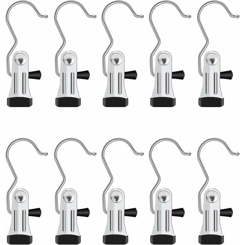 Materiale robusto: le clip in acciaio inossidabile ad alta resistenza garantiscono qualità e longevità, più resistenti dei ganci in plastica, compatte e leggere e hanno una vasta gamma di usi. La molla può facilmente aprire la sospensione. Queste clip possono appendere facilmente vestiti, scarpe o stivali per riporli o asciugarli.Il manico è antiscivolo: c'è un rivestimento in morbida gomma all'estremità della clip e non c'è una maniglia antiscivolo per garantire che i vestiti siano fissati saldamente a posto. E poiché la superficie è liscia e molto piatta, può anche proteggere i tuoi effetti personali da eventuali danni. Non ci sono graffi o graffi su stivali, vestiti, scarpe e altri vestiti. Adatto per molte occasioni: molto facile da usare, molto adatto per appendere gli stivali, ma anche per cappelli, cappotti, sciarpe, guanti, pantaloni, scarpe, lenzuola, asciugamani, calzini, ecc. Puoi far appendere gli asciugamani in bagno, appendere l'organizer al palo del pastore, appendere