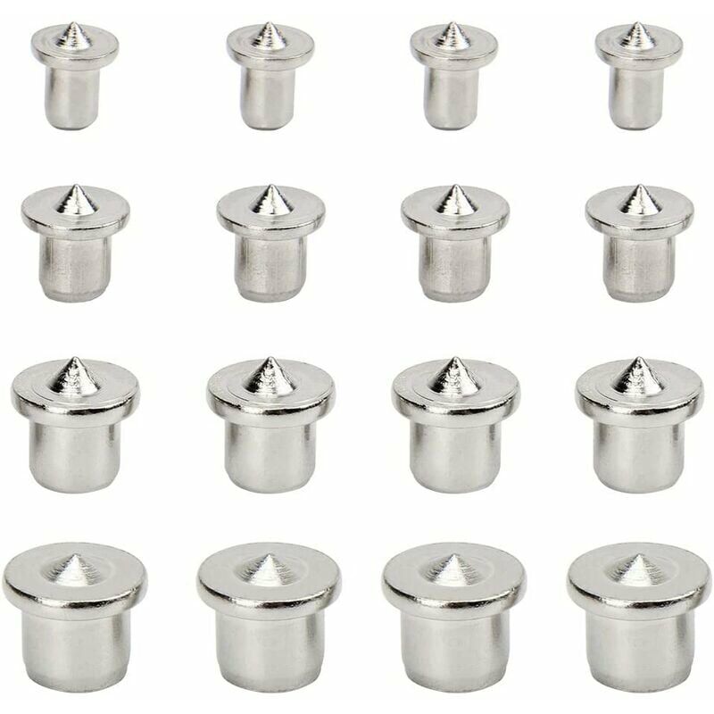 4 misure Un totale di 16 pezzi: La confezione contiene 4 diverse misure di perni di centraggio, 4 pezzi per misura: 6 mm 8 mm 10 mm 12 mm, le dimensioni essenziali garantiscono le diverse installazioni di mobili o mobili.oggetti d'artista. Materiale: il perno è in acciaio e ha buone proprietà di marcatura, quindi puoi usarlo su legni duri e sughero. Materiale in acciaio inossidabile di alta qualità, facile da riporre e mantenere. Funzioni generali: con questi centri di riferimento, è possibile allineare i fori dei tasselli nelle parti forate per contrassegnare con precisione la posizione del trapano nella controparte. Lavorato con punti di marcatura esterni Comodo e pratico: prima forare la tavola di legno e allineare il centro con l'altro blocco di legno. Quindi l'altro blocco di legno ha il segno del punto centrale e il segno viene perforato con un trapano e gli ultimi due pezzi di legno vengono combinati in modo preciso e senza offset allineamento del legno, che viene utilizzato