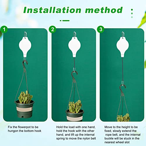 [Capacità di carico] La puleggia della pianta adotta ganci a moschettone, che possono proteggere la gabbia per uccelli e il vaso di fiori. La corda di nylon è abbastanza resistente da supportare piante o cesti di fiori fino a 10 kg/22 libbre (peso ). È sicuro appendere il vaso di fiori o dare da mangiare all'uccello, quindi non devi preoccuparti se il vaso di fiori cadrà.