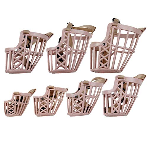 QFYZYZ - Set di 7 museruole per cani, in plastica, regolabile, con cestino, per cani di taglia piccola, media e grande, 7 misure, per evitare che mordano masticino e abbaiare