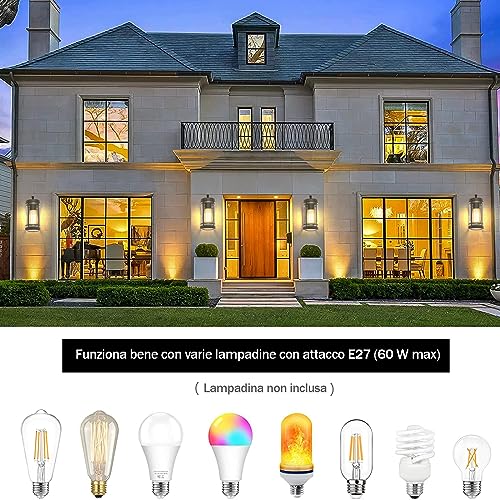 【Impermeabile IP44 e base E27】La lampada da parete certificata IP44, completamente impermeabile e perfettamente adatta a tutte le condizioni atmosferiche. Compatibile con tutte le lampadine con base E27 da 60W max (lampadina non inclusa).