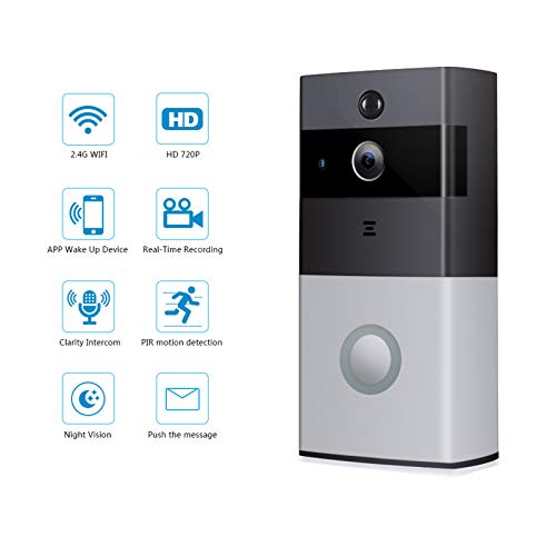QGGESY WiFi Campanello/videocitofono Senza Fili da Esterno,Impermeabile Campanello Wireless Video Visione Notturna,App di Promemoria di Rilevamento del Movimento PIR per iOS,Android,set1