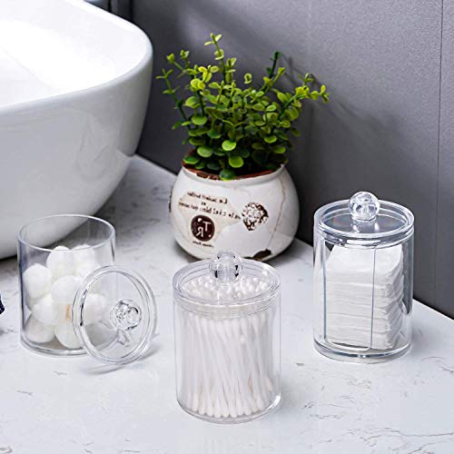 QH-Shop Porta Cotton Fioc Trasparente Acrilico Scatola di Cotone con Coperchio per Batuffoli di Cotone 3 Pezzi