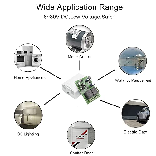 【Design flessibile】Grazie al design a 2 canali, è possibile passare da un prodotto all'altro o controllare un singolo motore sia in avanti che in retromarcia. È possibile memorizzare contemporaneamente fino a 20 trasmettitori portatili. Inoltre, un trasmettitore può controllare più ricevitori (il trasmettitore deve essere abbinato al ricevitore).