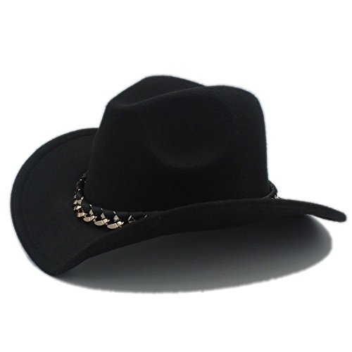 QianHaoQJu Cappello alla Moda per Donne/Uomini in Western Cowgirl Cappello da Cowboy per Gentleman Jazz Chiesa Berretto con Sombrero Cloche in Pelle con Catena, 2, 57-58CM