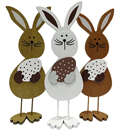 QIANLI Decorazioni Pasquali,Coniglio Pasquale Decorazioni, 3 Pezzi Coniglietti Pasquali in Legno, Pasquali Legno Coniglietti Decorazione, Pasqua Legno Coniglietti Regali per Pasqua Legno Coniglio
