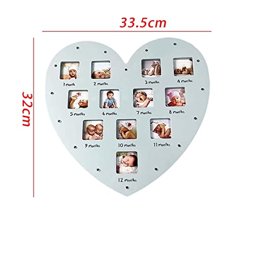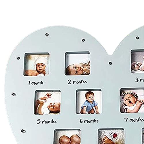 Qianly Cornice per foto del anno Cornice per 12 mesi Cornice per bambini a forma di cuore Cornice per ricordi in crescita per decorazioni per feste, Blu