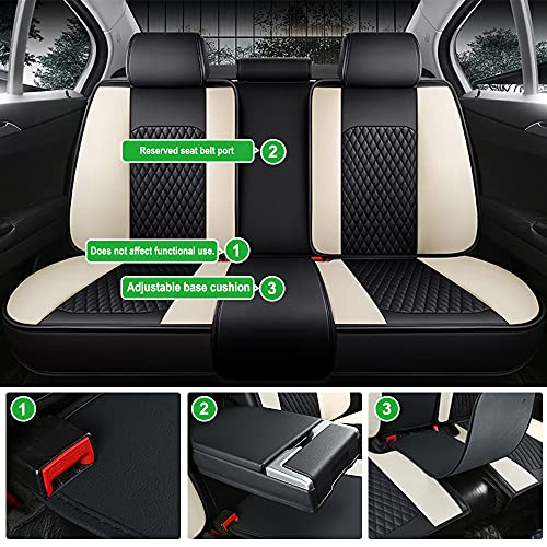 Qiaodi Auto Coprisedili Set Completo di 5 posti,in Pelle PU per Smart forsix Protettore Seggiolino Auto (Nero & Beige)