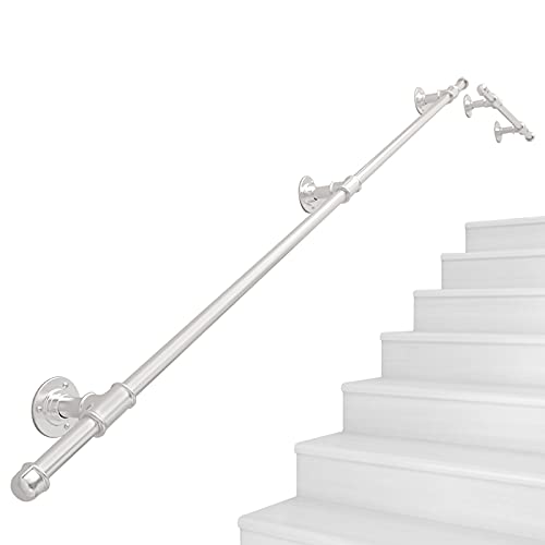 Qiaosiye Corrimano per Scale in Tubo di Ferro, Ringhiere con Supporti per Fissaggio a Muro, Oro | Argento | Nero | Bianco | Giallo, Passamano in Industriale (Color: Silver, Size: 3.3ft(100cm))