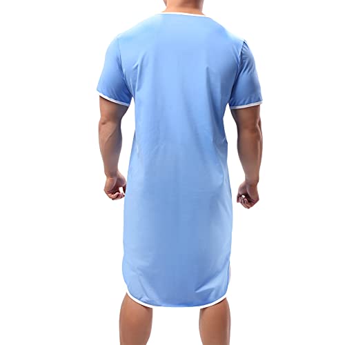 QiaTi - Camicia da notte da uomo, in cotone, comoda scollo a V, a maniche corte Celeste. L