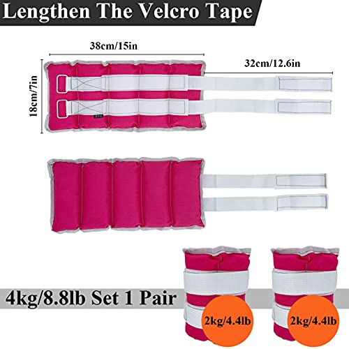 Qiccijoo Set di pesi per caviglia da 4 kg, per allenamento alla caviglia da donna o uomo, per fitness, corsa, camminata, 2 x 2 kg, rosa
