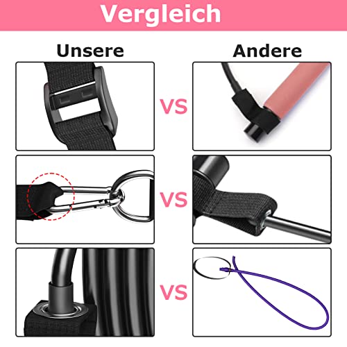 Lunghezza regolabile per ogni altezza: 4 fasce di resistenza regolabili, 2 pezzi da 100 kg, 2 pezzi da 100 kg. Per principianti e maestri di fitness sono disponibili diverse combinazioni di resistenza. La lunghezza della fascia di resistenza può essere regolata in base alla propria statura. Pertanto, le tute da pilates sono le attrezzature per il fitness ideali per uomini e donne.