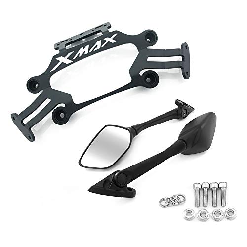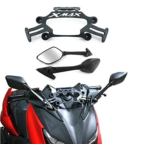 QIDIAN-Specchietti retrovisori per moto Supporto anteriore Supporto GPS Supporto per navigazione cellulare Specchietto retrovisore per XMAX 125 250 300 400 (bracket black+rear view mirror black)