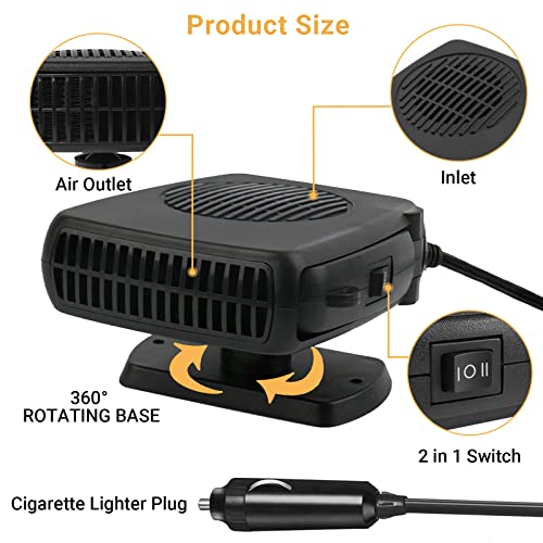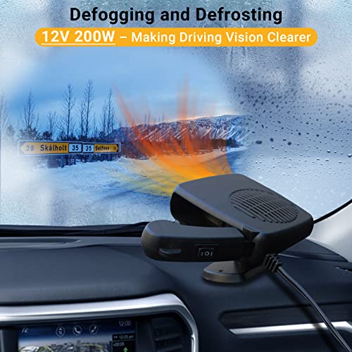 Qidoe stufetta 12v per Auto 2 in 1 200W 12 Volt Portatile Defogger Auto Riscaldatore Parabrezza 360 ° Ruotabile Adatto per Il Riscaldamento Sbrinamento Finestra Auto