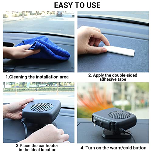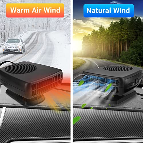 【Riscaldatore per auto 2 in 1】 Il riscaldatore portatile può essere utilizzato come riscaldatore o dispositivo di raffreddamento del parabrezza. Rimuove rapidamente brina e nebbia dal parabrezza del tuo veicolo. Può dirigere il calore a 360°, offrendoti una visione chiara, rendendoti più caldo e sicuro durante la guida. Resta fresco d'estate e caldo d'inverno.