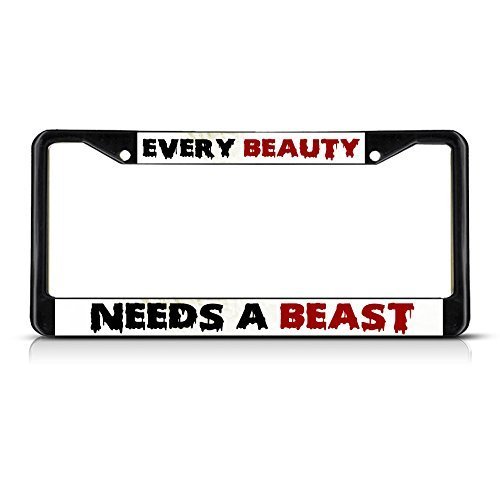 Qidushop Every beauty needs a Beast nero studio metallo cromato License Plate Frame tag Holder