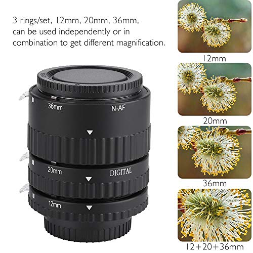 Qiilu Anello adattatore obiettivo, messa a fuoco automatica con prolunga macro prolunga tubo 12mm + 20mm + 36mm per fotocamere reflex digitali Nikon F(N-AF-B)