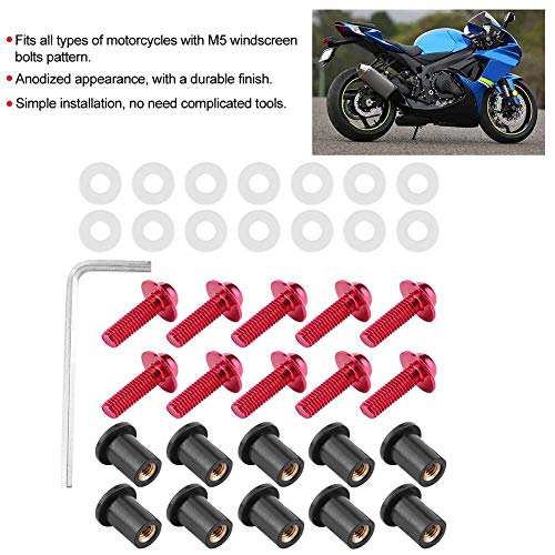 Qiilu Kit bulloni per parabrezza, 10 pezzi Bulloni per parabrezza per moto Dado Rondelle Kit di montaggio per carenatura universale per moto(Rosso)