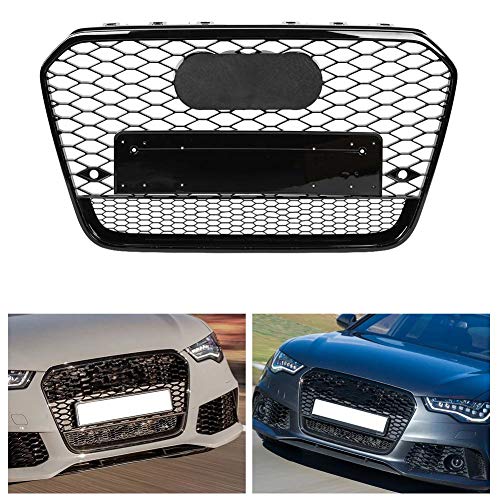 Qiilu Grill frontale, RS6 Quattro Style Hex Mesh Honeycomb Grill,Front Sport Hex Mesh Hood Grill Nero per A6/S6 C7 12-14