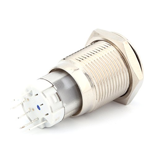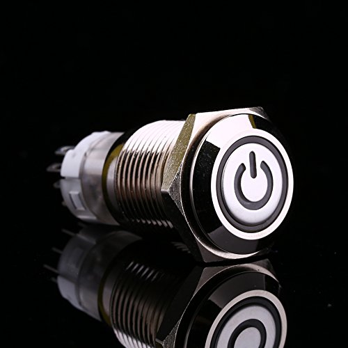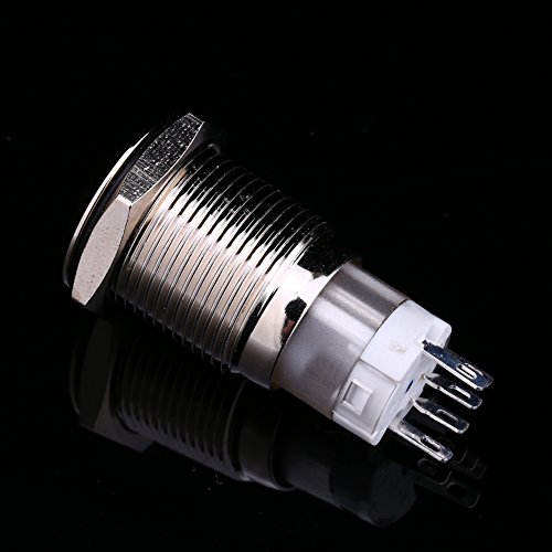 Qiilu Interruttori a pulsante, 16mm 1NO 1NC Collegamento LED on/off in metallo Interruttore a scatto Pulsante di accensione 12V