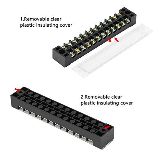 Qiilu Morsettiera a vite + striscia di barriera terminale preisolata, 5 pezzi doppia fila 12 posizioni 600 V 15A adatto per barrette connexion