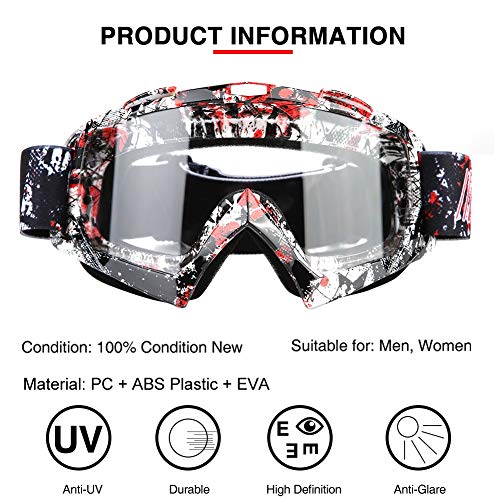 Performance eccellente - Gli occhiali per motocicli incontrano il design ottico umano, hanno una buona ventilazione di scarico, visuale ampia, può evitare un forte vento, grani di neve, nebbia e vari bagliore, gli occhiali di protezione possono proteggere efficacemente gli occhi dal vento, dalla sabbia o dalla lesione della neve