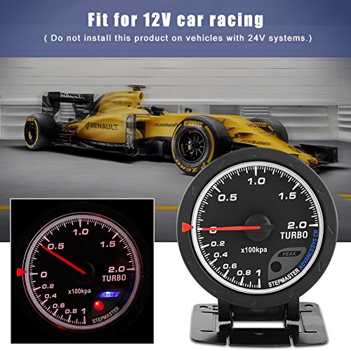 Qiilu 2 Pollici 52mm Indicatore Lens Bianco MeterTurbo Boost Gauge con Supporto + Sensore per Auto 0-200 Kpa...