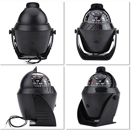 Qiilu QL04448 Bussola Elettronica Girevole di Alta Precisione con Luce a LED per Navigazione Navale per Auto(Black)