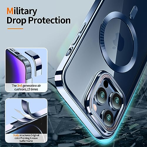 QiiStar Cover Magnetica per iPhone 15 Pro Max Compatibile con MagSafe,Sottile Trasparente Silicone Custodia Antiurto Militare Protezione Antigraffio Telefono Case iPhone 15 Pro Max Cover,Blu