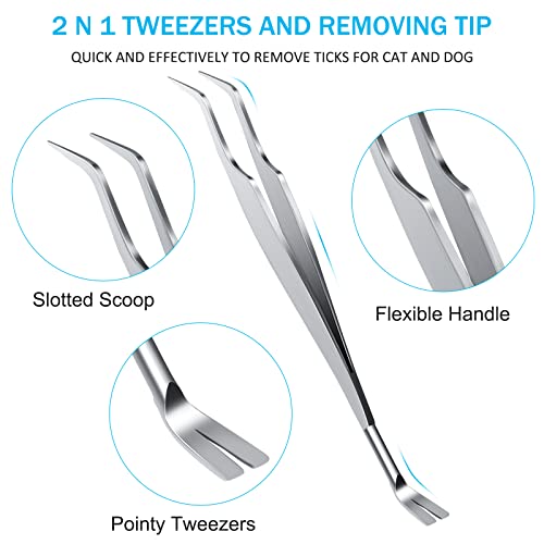 QIMEI-SHOP Pinza per Zecche 2 in 1 Pinzetta per Zecche per Cani Attrezzi Rimozione Zecche in Acciaio Inossidabile per Gatti Cavalli Animali Persone